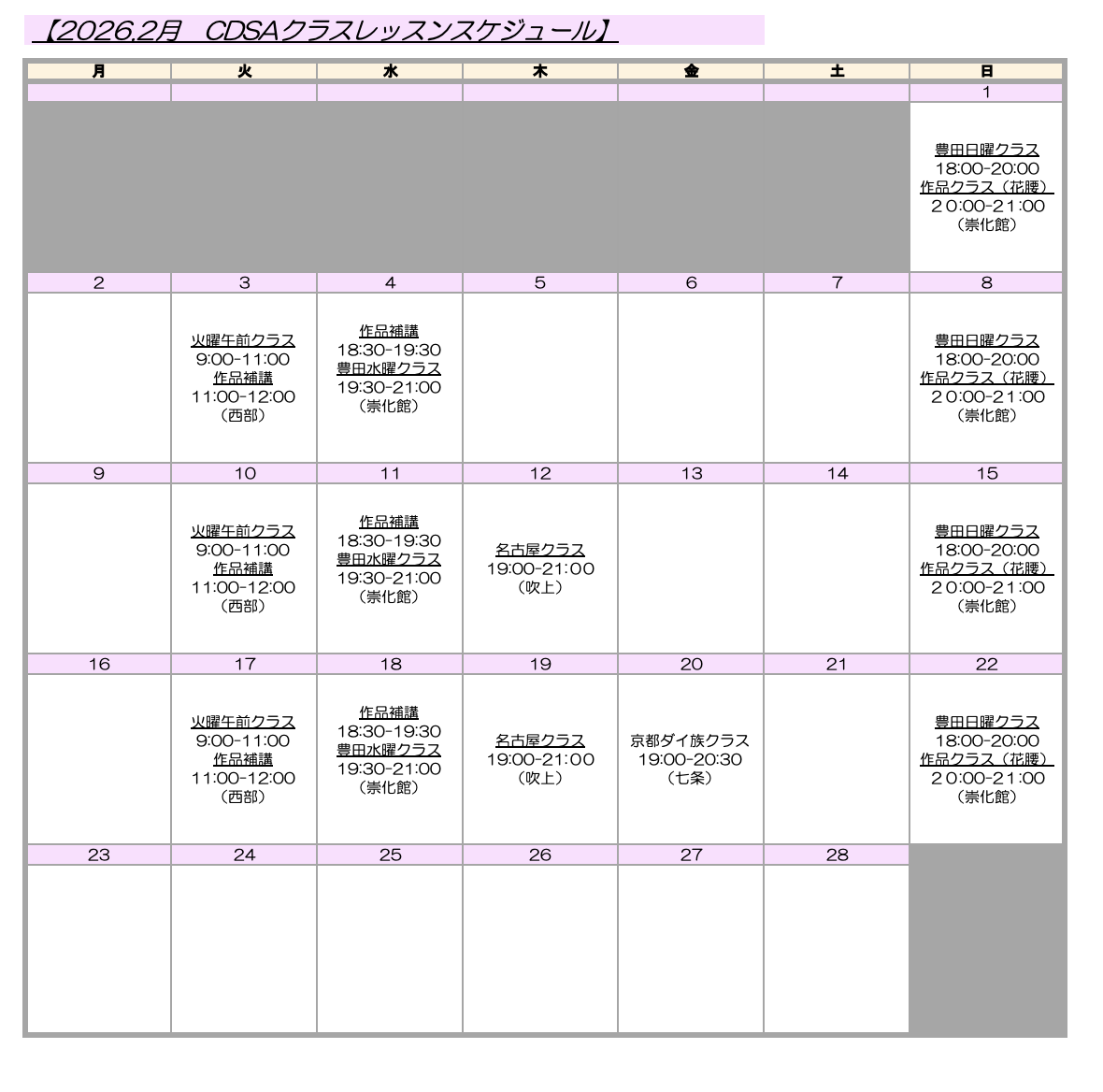 【CDSA 2月の定期レッスン】