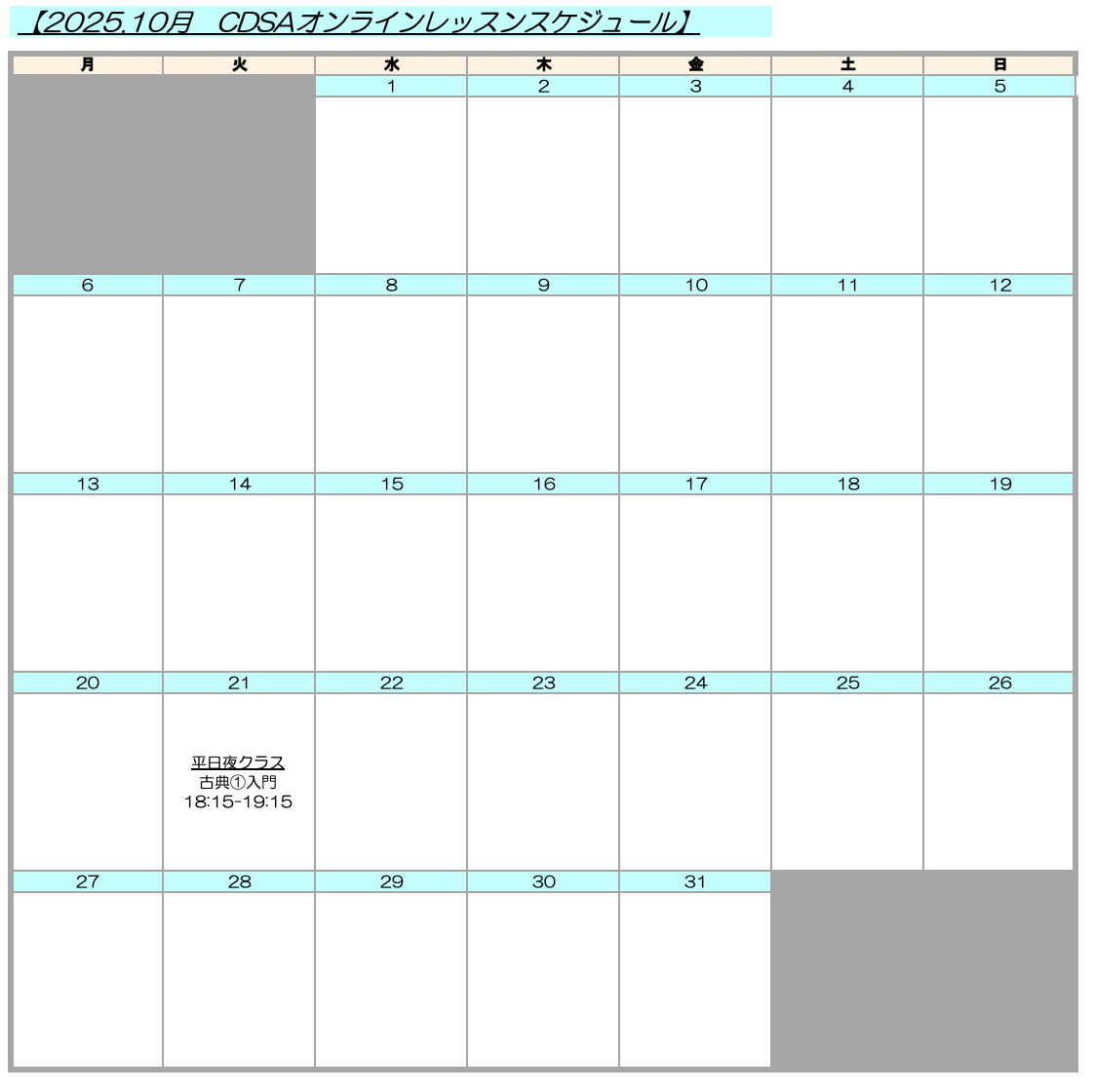 【10月レッスン日程】