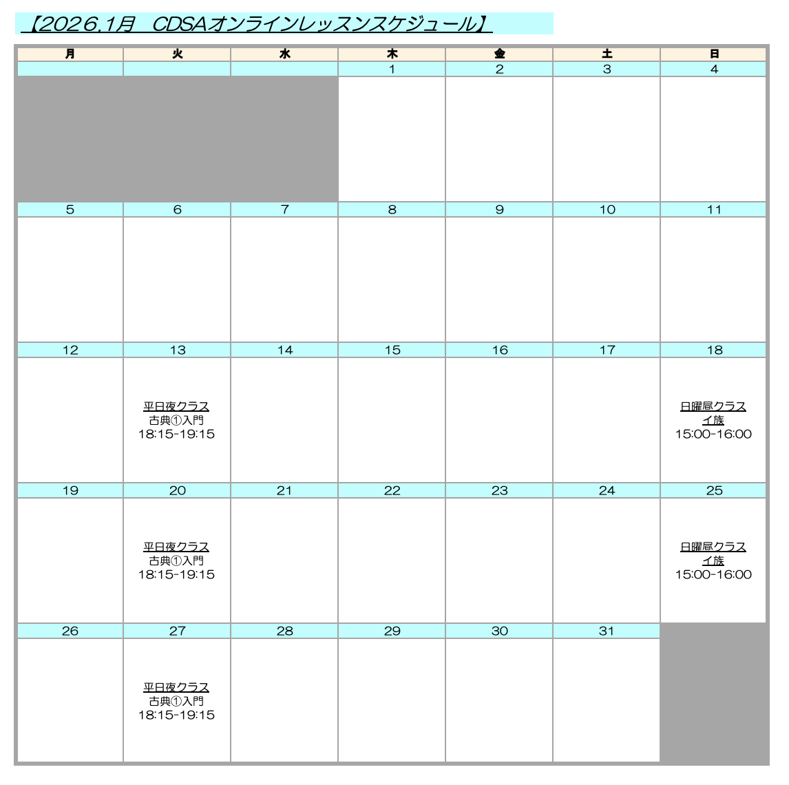 ◯ 日曜昼クラス イ族(15:00-16:00) 1/18,25